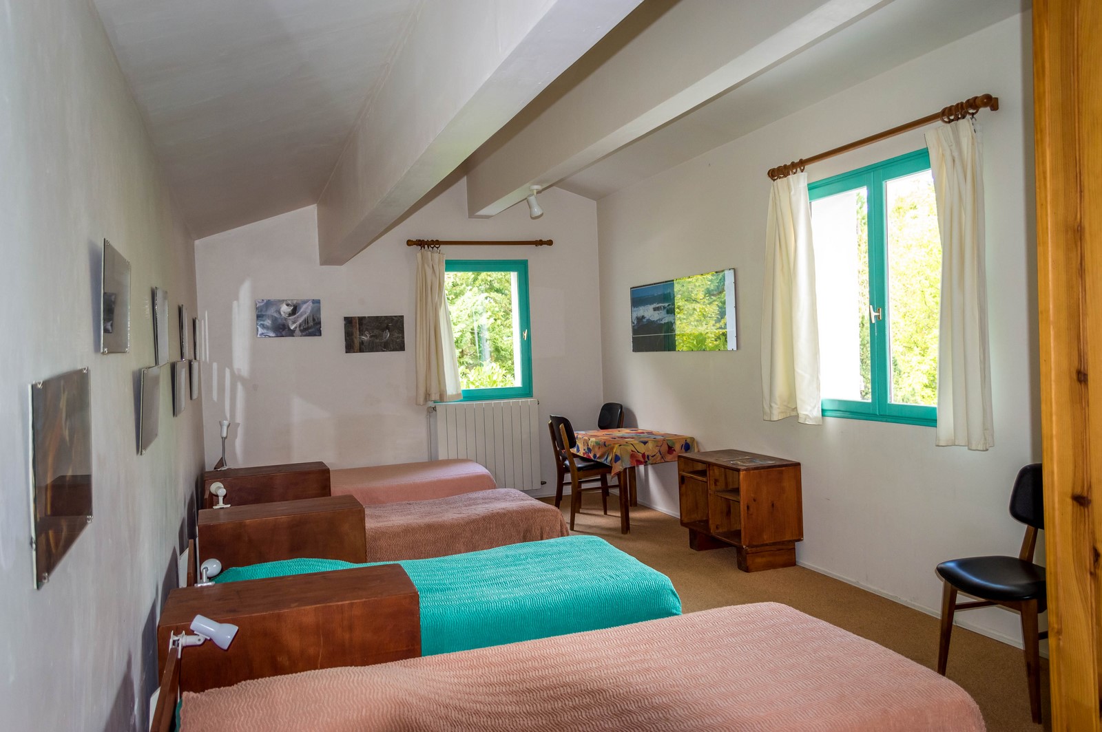 Une maisonnette à 10 mètres de la maison principale, constituée d’une chambre divisée en deux par un couloir, avec d’un côté, un lit 140, et de l’autre, deux lits 90. cette chambre et équipée d'un sanitaire complet avec douche.