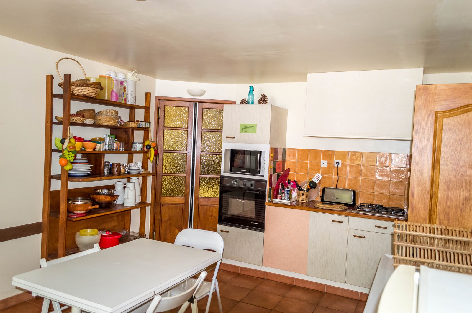 Au rez de chaussée de la maison, vous disposez d'un grand espace confortable, ouvrant sur une terrasse couverte au coeur du jardin, où vous pouvez vous détendre ou regarder la télévision. Vous avez également à votre disposition une très grande cuisine où vous pouvez manger à votre convenance.
