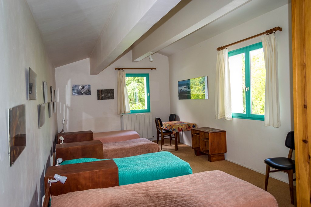 Une maisonnette à 10 mètres de la maison principale, constituée d’une chambre divisée en deux par un couloir, avec d’un côté, un lit 140, et de l’autre, deux lits 90. cette chambre et équipée d'un sanitaire complet avec douche.